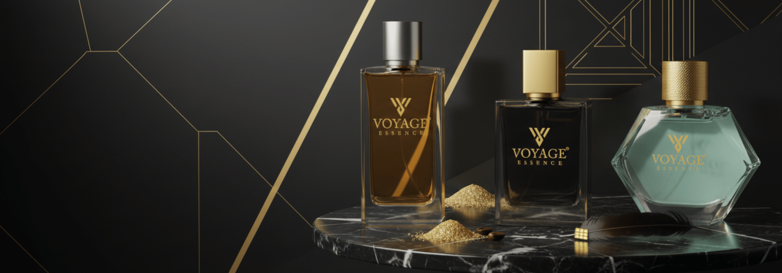 Defining Olfactory Excellence. The gold-accented, luminous bottle of Voyage Essence is a testament to your discerning taste.Where Perfume Meets Design. Our iconic bottle design not only preserves the fragrance but also illuminates your shelf.